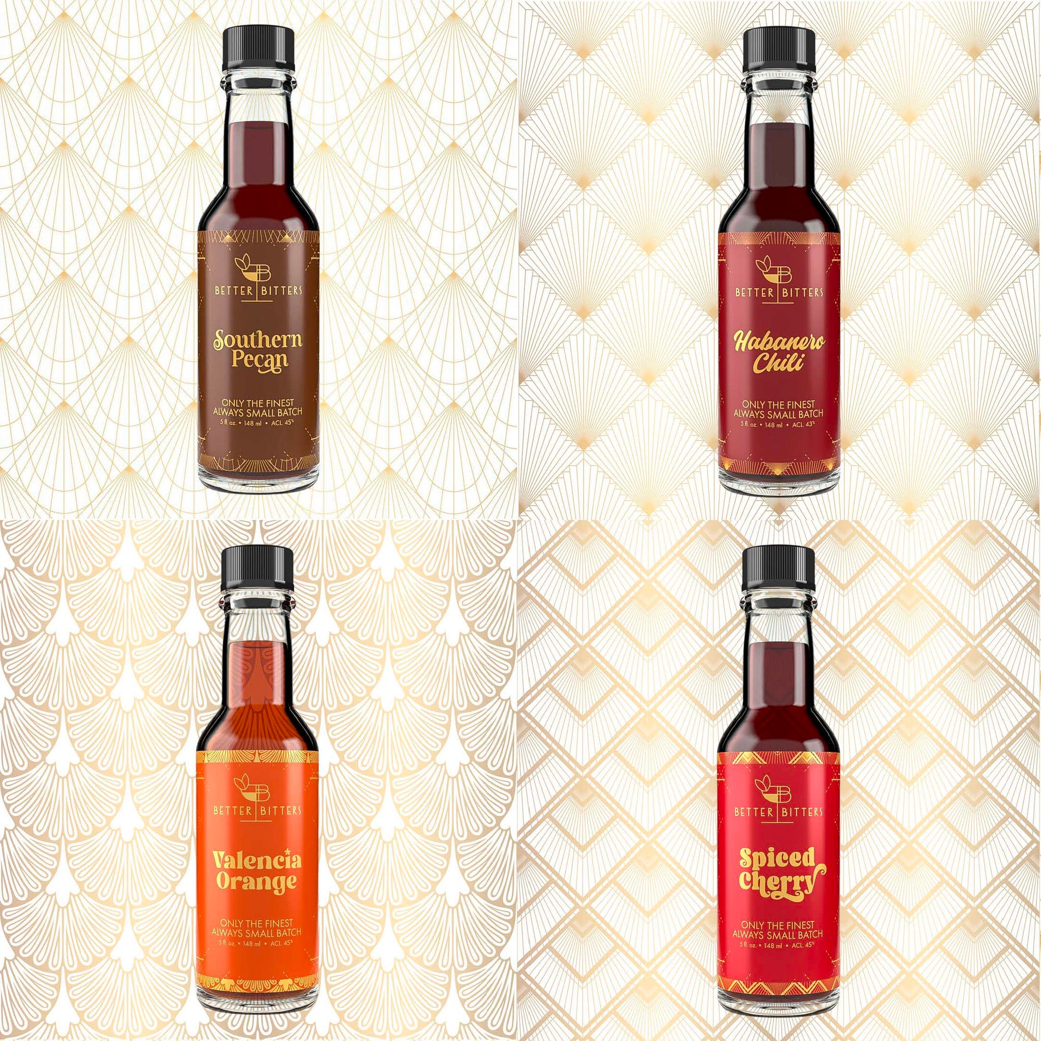 Contains (1) bottle of each flavor; Southern Pecan, Habanero Chili, Valencia Orange and Spiced Cherry for a total 4 bottles.